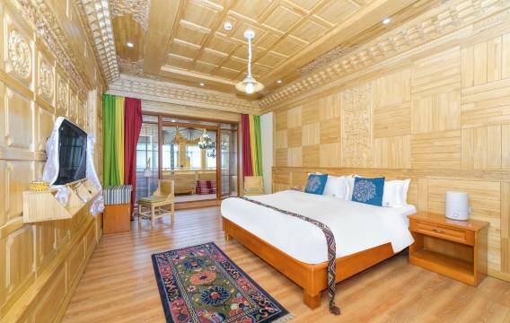 民宿是木质雕刻藏式风格,房间也全是木雕装修很漂亮,观景窗面山风景很好,可惜因淡季没有供应餐食,但就以这住宿价钱真的是太值了!