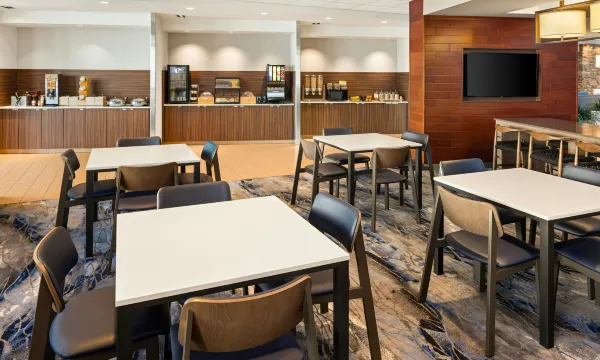 您可以到服务拉克罗斯市中心万豪费尔菲尔德套房酒店住客的杂货店/便利店随便找点吃的。免费欧式早餐供应时间为:周一至周五 06:30 至 09:30,周末 07:00 至 10:00。