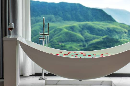 大床房有榻榻米和超大浴缸。景观一级棒,特别养眼。智能马桶,咖啡热水什么的,细节也做得很好。酒店干干净净特别整洁卫生!