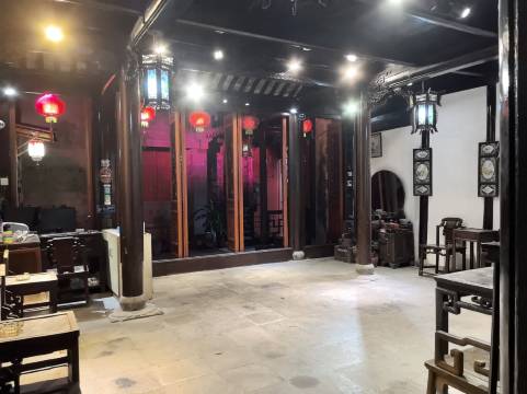 冯宅--尊闻堂百寿厅庭院度假民宿(武举人古居),有记载400多年,现系浙江省嘉善县文物保护单位。位于西塘著名的景点石皮弄中间,始建于元末明初,为西塘古老的民间建筑,现系冯氏人开发旅游景点和客栈。整幢建筑群由南向北,进门墙依次为桥厅、正厅、花厅及楼厅至下厅。据《元史》、《明史》等载:官民房屋绘画云雕有禁,俞制者罪之......然而此处梁、廊、窗上各种龙纹却随意可见,其刀法之精湛,雕技之圆满,形态之逼真,在民居建筑中实属罕见,是厅堂主梁上刻巨幅“包袱巾”---刻著一百个“寿”字“万”字蝙蝠组成的百寿图案,华美富丽、层次细腻,令人欢为观之。据考证如此完美的古建筑珍品在全国已属罕见,所以此厅又号称“百寿厅”。 民宿现有六间中式简约时尚设计的宽敞大客房,还有免费的娱乐棋牌室,古老的大厅可以聚会聊天喝茶,也可以一起聚餐吃饭,适合三口之家或者十几位好友一起活动。民宿出门便是石皮弄,种福堂(王宅),环秀桥,烟雨长廊,西园等著名景点,因为民宿大院在石皮弄当中没有临街,所以清晨街上的喧闹声不会惊扰您的美梦。而距酒吧十来分钟的步行路程,正好把酒吧的高分贝音量消弭于无形之中,让您在优雅、安静的环境中进入水乡梦中。民宿无论是规模上还是硬件上在景区内都是数一数二的特色庭院式客栈。能够从多方面满足不同客人的需求!是你旅游、度假、休闲的理想去处……