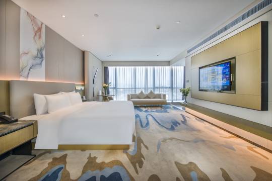酒店是一尊由名家设计、匠心筑造、尽显轻奢豪华风格的高端酒店。酒店以“江右商帮”为底蕴,在设计中融入了瓷、茶文化和山水元素,让您感受别致的江南特色文化。