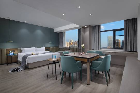 酒店设有108项管家服务,房间采用机器人“小飞”控制灯光、开关电视、窗帘、空调、直连前台电话等。酒店内设有自助早餐、下午茶点、闲适书吧等娱乐设施,让您在酒店可以消遣时光。酒店另配有大型停车场、会议室、自助洗衣房、健身房、宾客24小时管家服务,轻松解决您在旅途中的烦恼。房间采用美国舒达和金可儿床垫,酒店一直秉承“用我们百分之百的努力,换取您十分满意”的管家式服务理念,致力为来自五湖四海的宾客提供优质的服务体验和舒适的入住体验感。