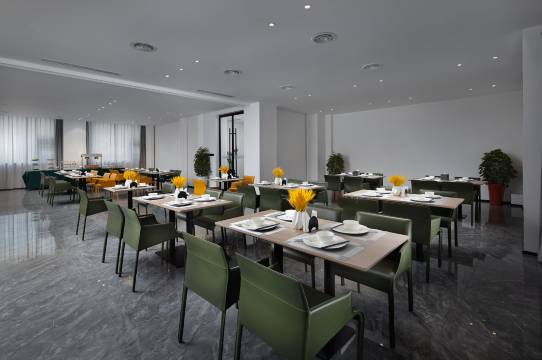 房间干净整洁,干湿分离,早餐种类很多,是自助早餐,就餐环境干净味道不错,前台大厅还有机器人送小点心,非常智能化