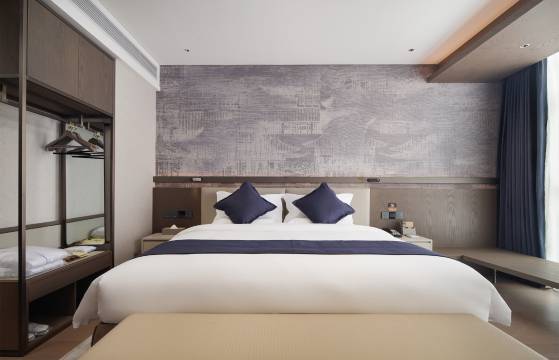 房间干净整洁,电动窗帘机器人送餐服务特别方便。前台工作人员服务特别好,给免费升级了豪华大床房,还赠送了孩子的早餐。