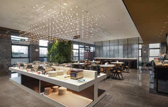 依托延庆地区的自然人文条件,酒店整体的空间设计也遵循崇尚自然的理念,从妫水河、八达岭、龙庆峡等著名景区的丰茂风光和厚重历史文化中提取灵感,将对心灵与自然和谐共融的追求,以美学的方式延续到每一个空间、每一处细节之上。酒店共13层。首层为大堂,设有咖啡吧和早餐厅。二层设有多功能厅、会议室、商务中心、健身房、自助式洗衣房。四层设有建筑面积约1200平方米的中餐厅,以湘菜、粤菜为主菜系,同时融入了延庆当地的代表菜品,组合成了独特的融合菜式,顺应大众顾客的多种口味需求。大厅可至多容纳30桌,同时配备高清LED屏、可控光源系统和先进的音响设备,可承办各类宴席。中餐厅还设有5个包间,其中的大包间可容纳20人左右。中餐厅可同时接待顾客400余人。