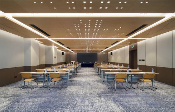 酒店客房区域拥有各类房型,其中还专设无障碍房间,房间内配备音乐花洒、90°可旋转电视、智控灯光组合与窗帘、节水台盆等智能化设备。