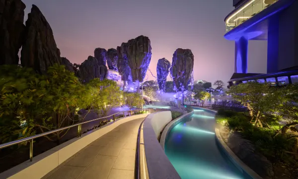 芭提雅性价比非常高的一家高端酒店,装修风格比较年轻化,酒店的楼顶泳池很出片。酒店楼下还有个水上乐园,很适合亲子游。酒店位置也很不错,就在21航站楼购物中心几百米位置,周围吃饭购物都比较方便。之前早餐在顶楼,海景很美,后面换到5楼,景色就略差一点了。总体4.8分,值得推荐入住!