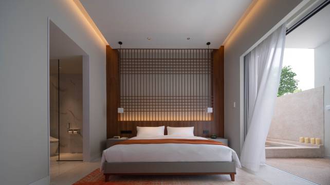 酒店建筑面积约2800平方米,绿地面积约4000平方米,整体设计风格简约现代,以白色为主基色,在简单的色调基础上,运用线条、层次、空间构造等艺术方式带来不同寻常的视觉感受。酒店设有不同类型的客房,其中带有私汤的大床房,一房一景,平均客房面积在50平方米以上。另设有公共汤池满足不同宾客的需求。无边泳池戏水休憩时眺望太湖风景别有一番味道。中西合璧的特色餐厅,食材严选,口味正宗,菜品不求多,但出品必是精品。360度无敌威士忌酒吧,是放松和微社交的场所。山景健身房,对于每天都有身体管理计划表的精英人群来说是必不可少的。可容纳20人的豪华房艇,航行在清澈的太湖湖面上,一杯香槟,几缕微风,赏夕阳,敬时光。