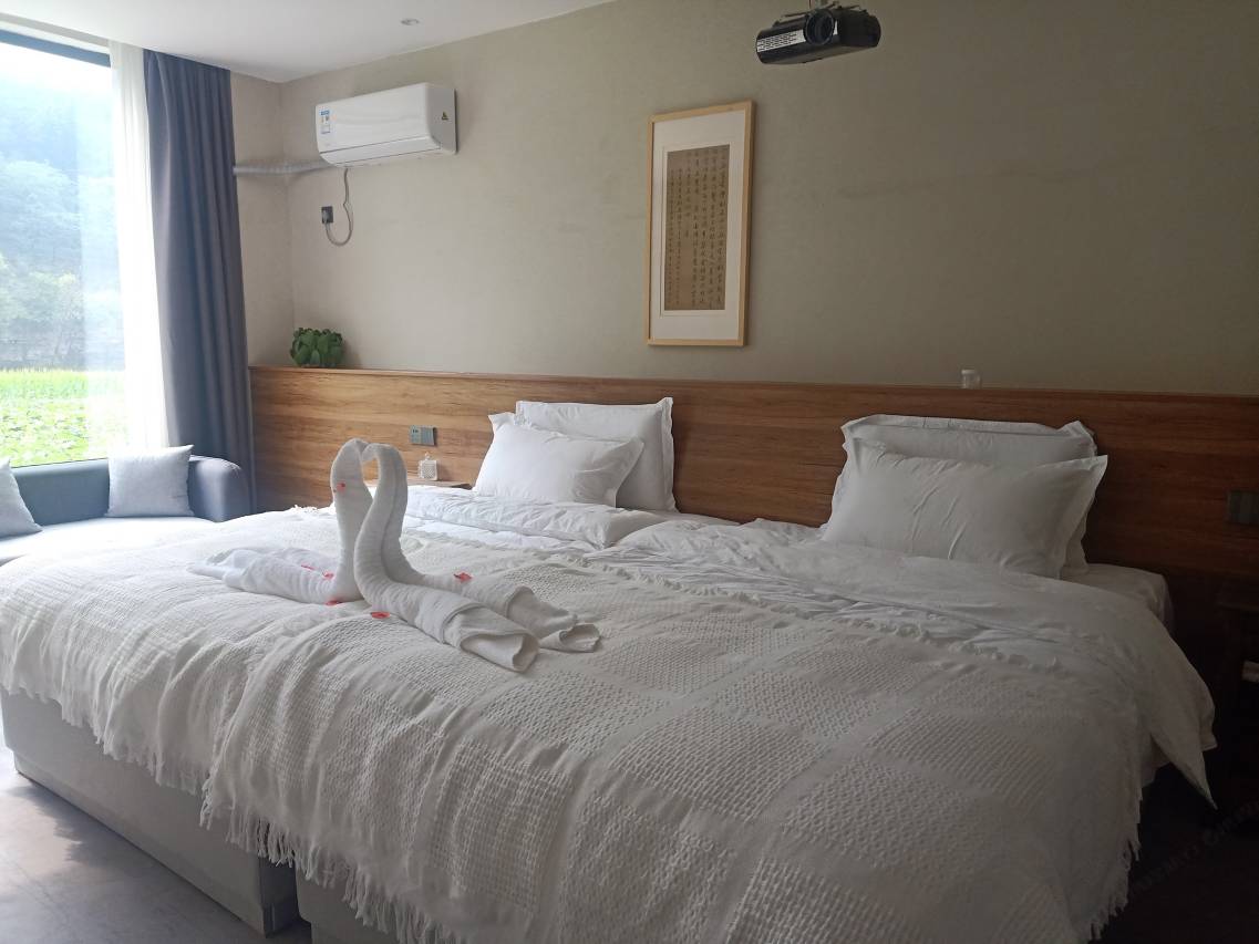 老板很nice 免费加了小床,整体不错,夜晚很凉爽,坐在屋外听潺潺溪流 享岁月静好;院内有大水池 蹦床等游乐设施 动静皆可 待上一天也不会无聊。就是房间水压不稳 有待改善