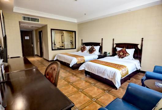 房间很大很宽敞,床很大,酒店看上去和城堡一样,带儿子去了二楼打台球,服务人员很热情,重要的是那天正好剃须刀没电了,酒店里有一次性的,值得表扬,早饭种类多,儿童还免费了,而且帮忙免费打印了工作资料,真的很棒的一次体验