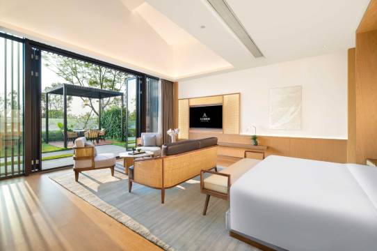 对家庭客群非常友好,两张1.8米大床休息的特别好。酒店环境非常好,四周群山环绕,在公园正中。建筑有特色,有点住在杜甫草堂的感觉,早餐丰富多样,非常推荐。就是泡池要及时清理一下树叶,要不没办法用。