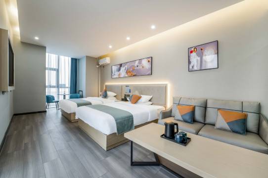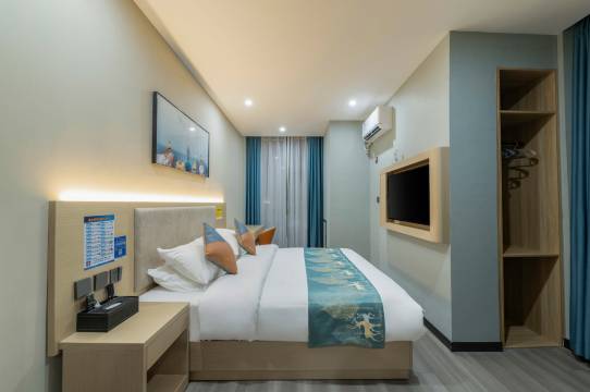 酒店非常好,干净卫生,通风好。非常满意,卫生干净,一尘不染,房间住着很安心,周边有万达广场、夜市、美食街。想吃的想逛的都有,性价比很高,前台漂亮温柔服务不错。离高铁站很近,出差旅行很方便。
