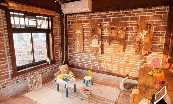 推开院子的门走就来,就感觉来到了一个会呼吸的庭院,绿意葱葱,有凉亭有流水和满池锦鲤,不由得让人放满日常的快步调。上来古色古香木调的房间,让人一走进来就觉得满满的安心❤️细节之处都感受到主理人设计时候的匠心。