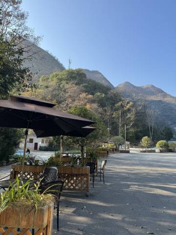 酒店旁边有一条河,源头是山洞出来的暗河。酒店品质超出我的想象,不是普通民宿。距离大石围天坑很近,酒店还是地质培训基地。