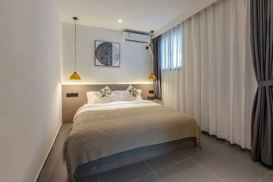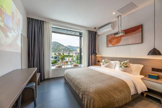 民宿位于美丽的环岛南路,步行至沙滩5分钟左右,北欧风格装修,部分房间有投影,民宿有自己的电影服务器,上万部电影看。非常适合商务出行