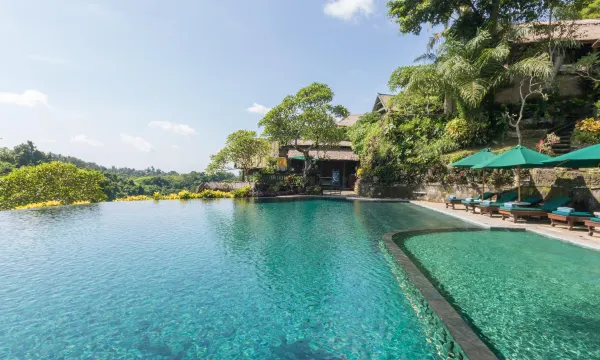 在乌布非常非常好的别墅酒店,设施齐全,绿树丛中的客户非常幽静,工作人员服务热情,餐饮色香味美,非常好的酒店