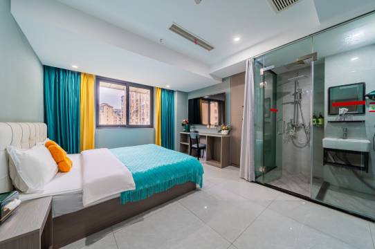 房间干净整洁,老板服务态度超好的,很细心,床很软,睡着很舒服,设施齐全的,这个价格真的很棒了,周边吃的也多,很良心的老板了!!!我住的朝里,很安静诶,一点都不吵!酒店附近这家烤鱼也巨好吃!!!!
