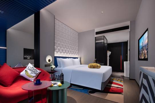 房间布置很有特色,有多种风格可选,卫生,整洁,床品很不错。前台和后勤服务人员都很热情。早餐挺合我这个不吃辣人的口味。性价比高,在黄兴路步行街,离地铁口很近。