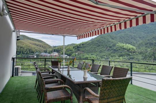 酒店是新现代中式ins风,配套设施设备齐全,房间内配备品牌空调,液晶电视,全屋地暖,高级乳胶床垫,星级定制床上用品,高品质洗漱用品等,酒店公共休闲区配备游泳池、茶室、KTV、棋牌室、台球室、会议室(10-20人)、独立餐厅、书籍等设施,提供时令水果、早餐、免费停车、WIFI等服务项目;酒店有山景观景露台,可观无敌山景,民宿服务热情,可因游客要求,带领游客采购当地特产,游览当地名胜,是家庭亲子、聚会轰趴、团建培训、休闲度假的优先选择。