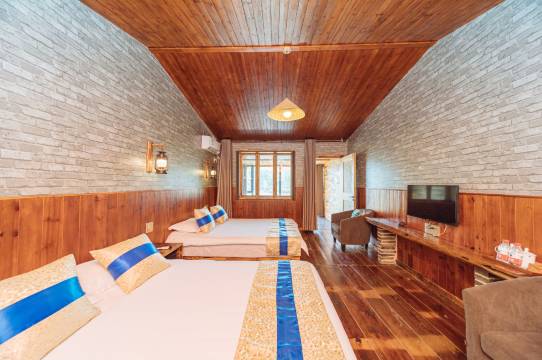 当天游玩到的晚,老板很贴心,房间空调都已经开好等我们来,我们电车,老板还给我们把车子充好电,屋子很大,还有个小阳台,小木屋原生态的感觉,晚上买了点烧烤,落地窗可以看见外面的景色,就是我们不知道老板这里还有优惠的门票,下次再来玩,一定到老板这里买。不错的一家民宿。