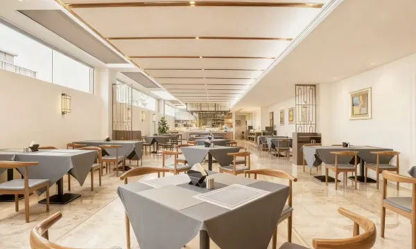 早餐种类丰富,中西式都有,食材新鲜,现做的面条味道很赞。工作人员服务很到位,看到杯子空了会及时添水,收拾餐桌也很麻利。