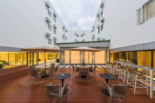 酒店位于福田CBD中心商务区,地处车公庙商业圈与华侨城旅游区之间。交通极为便利,地铁1号线竹子林B2出口即达门店。前往车公庙商圈地铁1站路,步行10余分钟,前往深圳会展中心(福田馆)车程10分钟,地铁1号线4站直达。前往世界之窗与华侨城旅游区地铁1号线3站直达。前往福田高铁站只需5分钟车程,距福田口岸,皇岗口岸车程10分钟。门店配套齐全,2个多功能会议室满足各类会议需求,中餐厅可做早中晚三餐,满足客户不同时段与会务用餐的需求。健身房内配有各类健身器材是您娱乐,休闲健身的场所。自助洗衣房内配有多台洗烘设备,户外空中花园是您休息放松,商务洽谈的场地,繁忙之中有一份宁静。