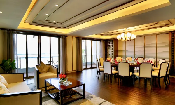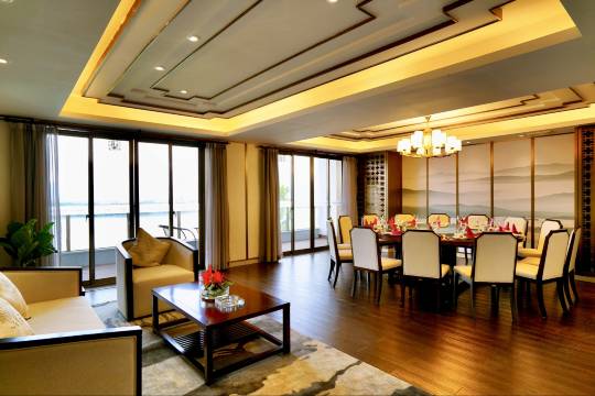 知名餐饮团队打造的临江花园餐厅主要以海鲜、本地特色菜、养生菜为主。餐厅拥有16个江景VIP包厢以及能同时容纳1000人的宴会厅。