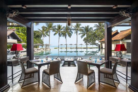 环境真好,沙滩刷了再刷,特别出片。房间有点小,但设施齐备。洗手间和淋浴间真的是热啊,如同蒸笼。早餐很好,晚餐在海中游廊,海风吹拂,把酒临风,浪漫无边。前台英语也挺好。spa 就一般般啦。