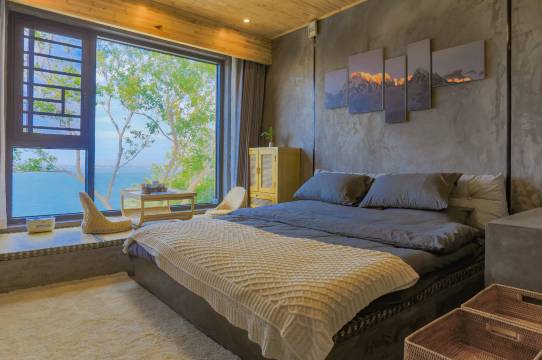 一层设计了“待月 海景大床房/2米规格”; “望峙 海景大床房/2米规格”; “观澜 海景大床房/2米规格”;“留云 楼中楼-空中花园海景大床房/2米规格”;“拾光 楼中楼-空中花园海景大床房/2米规格”;“落梦 禅意双人床/1.5规格、1.8米规格”。房间床垫采用10公分乳胶床垫、无印良品床单配套、纯棉被套,舒适感极佳。