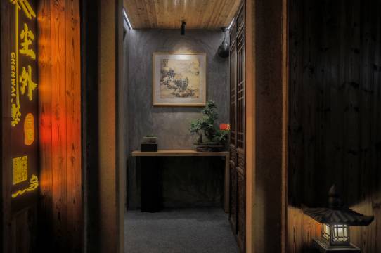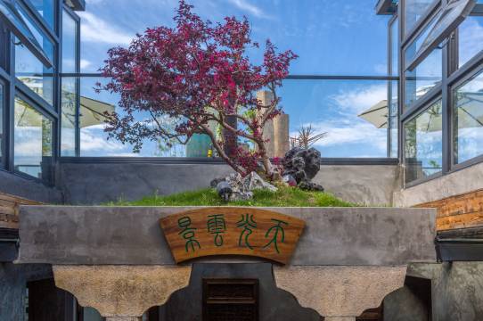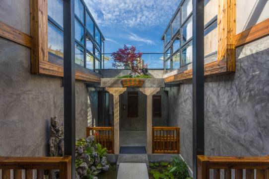 民宿附近有收费的地下停车场、露天停车场两种,为自驾游的朋友们提供了极大的便利。庭院内设计者匠心独运,处处鲜花点缀,禅意风格大气恢宏,玻璃房、水景、枯山景层层呼映。
