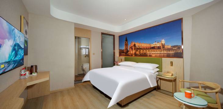 客房空间规整,采光通风良好,整体为现代简约风格,配色柔和不压抑。床品干净亲肤、床垫软硬适中,能保证一夜好眠。卫生间干湿分离,洗漱台、马桶、淋浴区洁净无异味,备品齐全好用。房间隔音到位,关上门便隔绝外界喧嚣,睡眠浅的人也能安心休息。空调、热水、WiFi稳定,电视、桌椅、收纳空间实用,日常需求都能满足。
