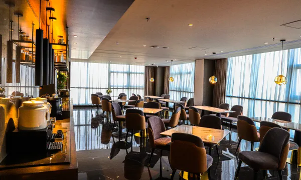 酒店服务挺好的,工作人员都有礼貌问好,而且很贴心,外卖都会有工作人员帮送到房间,楼层只有入住客人拿房卡才能上去,特别安全。环境很棒,是庆阳最高的观景酒店,室内环境很有设计感,而且还是落地大窗,房间让人感觉到温馨舒适。27层的咖啡厅和早餐厅设施都很齐全,免费赠送了下午茶体验,提供的早餐也琳琅满目的,种类太多完全不知道该吃哪个,很适合我们的口味,整体有种度假风的感觉,前台小姐姐服务热情而且都很漂亮,入住特别舒服惬意,下次来庆阳还会选择这家酒店!