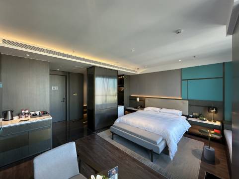 房间十分满意,每次出差都在这里入住,风景好服务好,视野广阔,入住很开心,还有下午茶早饭,卫生间有洗脸巾,洗衣液等,非常完美,下次还来住!