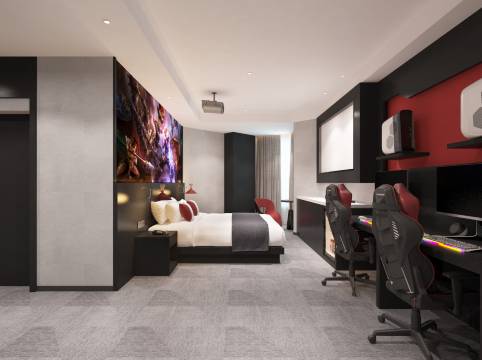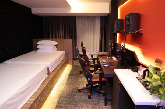 【产品特色】:酒店致力于打造十堰电竞酒店先锋品牌,为玩家做好沉浸式电竞体验服务。定制上下铺,瞬间让你回到学生时代的快乐时光。全部是酷睿12代i7 CPU+ 华硕RTX3070TI显卡+威刚32G运行内存高配的电脑,游戏画面更加流畅、技能释放更加随心所欲,点燃你对电竞新体验的热爱。酒店还配备有(中西式自助早餐厅)、(中晚餐厅) 、(花园夜市)、(自助洗衣房)以及(健身房)等配套服务,是您休闲、娱乐、住宿的理想憩息之所。