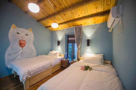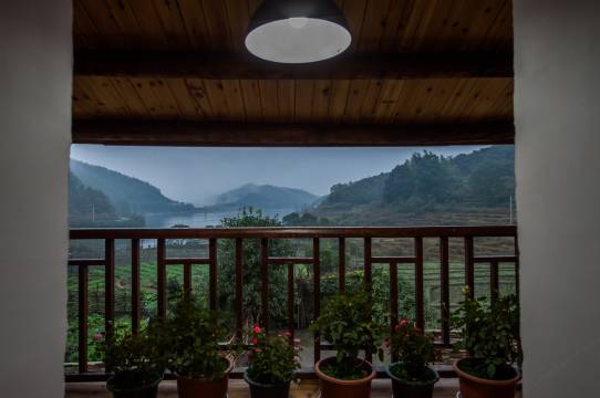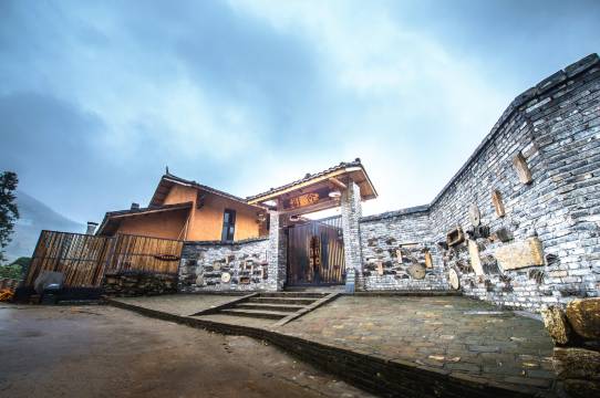 这里周边青山环绕,山顶白云悠悠,云雾缭绕,宛若仙境,门前梯田连绵,绿树成荫,小桥流水,宛若一副油画。庭院内种着各种花草树木被石板小径隔成规整的一块块,生机勃勃。走廊、大堂摆满了娇艳的花儿,温馨甜蜜。这是天然的解压场,在不破坏当地自然人文环境的基础上因地制宜,真正做到人与自然和谐相处,天人合一的境界。