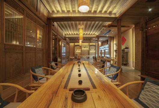 民宿位于世界自然遗产、世界溶洞“全能冠军”-张家界武陵源黄龙洞景区内。由黄龙洞投资股份有限公司与中国民俗建筑大师李宏进团队携手打造,是全国仅有的一座坐落在5A景区核心区的精品民宿。 以“龍舍”为名,不仅得益于天时地利的位置优势,而其更深层次的寓意则是,与龙为邻、住者蒙龙之吉兆,归真归祖,更是我们的幸运和福报。出于对山水生活的向往,龙舍从文人隐士笔下对田居生活的描绘里出发、寻找、创作、安住身心原始的渴望,在山海传说之地的湘西,造就的一座真正意义上的“国民桃源”:黄砖、赭木、白墙、青瓦鳞次呈现,雕花、飞檐毗邻错落,白日绮丽,夜晚宁静,如一幅令人沉醉的民俗风情画。为营造舒适体验空间,龙舍客房甄选床品、卫浴、家居用品,并提供高级私人管家服务。餐厅礼请本土著名湘菜大师主理,以湘西土家私房菜为特色,为客人带来别具民俗风情的味蕾体验。酒店总共16间客房,适合30人左右企事业单位包院会议团建、研学静修、茶事疗愈等活动,除游黄龙洞避暑,更有非遗扎染、旅拍、直升机体验等活动,详情咨询前台管家。