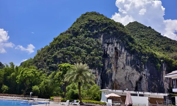 美住·刘三姐秘境酒店位于广西壮族自治区河池市宜州区刘三姐镇龙水路1号,地处下枧河风景区内,周边环境优雅静谧、依山傍水,旅游交通十分便捷。酒店楼高三层,整体装饰古典雅致,客房布置将传统元素与现代居住理念相结合,宽敞舒适,设有带阳台的双人床,豪华大床房,山景房,亲子套房,行政套房等等多种房型,房内设施一应俱全。酒店还配套有多处公区休息,娱乐的地方,以及有健身房,洗衣房等。 附设装饰豪华典雅、可容纳百余人就餐的宴会餐厅,中餐厅提供各种佳肴与风味小吃,是国际健康餐饮企业、中国 3A 绿色饭店。 酒店配套有健身房,洗衣房等。 会议:有可容纳200人开会的多功能厅和会议室,适合举办各类商务会议和活动。 娱乐休闲:配备了现代化设施、标准豪华游泳池、精品中式茶艺室、网球场、篮球场、楼顶烧烤区、室内外婚纱摄影区等配套设施,还设有商务中心、酒吧、羽毛球场、乒乓球场、天然游泳池、烧烤场,等服务设施。还是广西旅游汽车营地。 有天然水的游泳池场:利用自然条件打造的游泳场所,让游客可以在自然环境中享受游泳的乐趣。 有坝瀑:水从坝上冲下形成瀑布,白晃晃的水花,哗哗作响,景色十分壮观。 有竹林步道:山庄周边环绕着竹林,设有步道供游客漫步其中,感受竹林的清幽宁静,欣赏自然美景。 是刘三姐故居和文化传承地。具有文化特色的景观,为景区增添了文化底蕴。