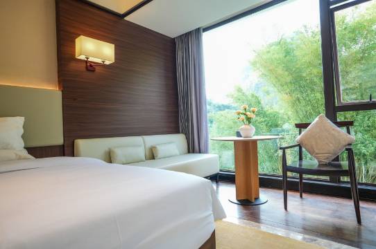 国庆假期玩了两天,感觉很好,真是挺惊喜的。房间装修舒适,有河景阳台风景很美。前台很热情很耐心。酒店旁边可直达下枧河,观光嘻水玩浆板非常方便,适合亲子出行游玩。下次还会再去。