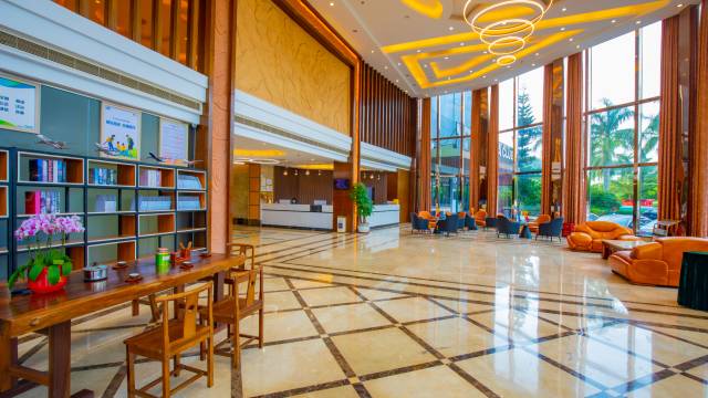 酒店大堂很大气,还有免费接送机服务,早餐是自助餐,也很丰富,味道也很好,服务员服务很热情,房间干净卫生。