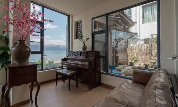 这家民宿,室内的布置很有格调,复古留声机和钢琴搭配着大面的观景窗,阳光洒进来的时候,整个空间都充满了慵懒又浪漫的氛围。在这里待着,什么都不用做,光是看洱海海景景、吹海风就足够治愈了。