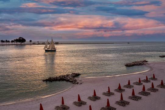 清水海滩希尔顿欢朋套房酒店位于克利尔沃特海滩,紧邻海滩,距离圣彼德斯堡 - 清水海滩仅咫尺之遥,距离60 码头公园也只有 15 分钟步行路程。 此海滩酒店距离坦帕 8.6 英里(13.8 公里),距离净水海滩 1.2 英里(2 公里)。