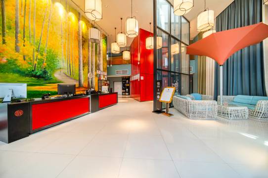 非常好的酒店环境,装修有特色,房间格局特别人性化,洗漱台在外面,厕所单独的,淋浴间也是单独且干湿分离的,洗澡水恒温,水流大,洗漱用品都是大牌的~房间走廊里都有沙发,还有书可以看~晚上不开空调也感觉不冷。酒店还有自己的停车场,在住免费停车,自驾非常方便。如果不想自己开车的话,出门就是地铁站,交通非常便利~