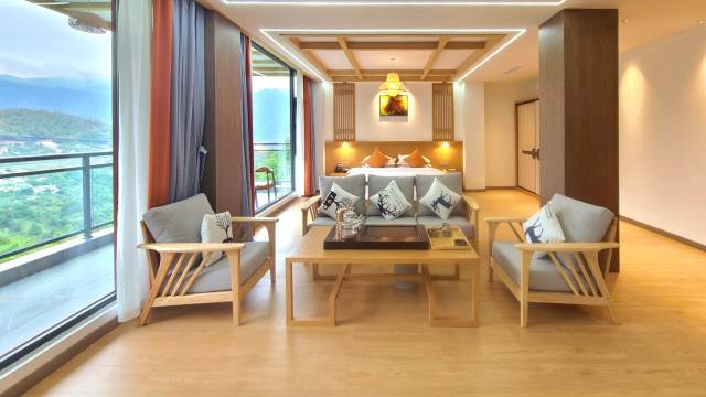 位于黄草岭深山中超级赞的半山酒店,连住两晚意犹未尽。每间房都有好听的名字,特别推荐听猿-2。超级大房间,超级大露台,隐私性极好,性价比超值。可以安静坐上一整天,直面层叠如水墨画的高山,原始森林植被郁郁葱葱,听风听鸟听猿。前台小哥小妹都是本地青年,纯朴热情又健谈专业,比起星级酒店更有人情味。现在正值樱桃收获季,甜美多汁的樱桃配上附近农家乐的乌骨土鸡,度假休闲首选之秘境酒店。