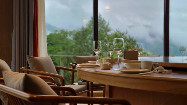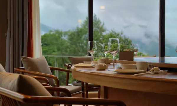 早上打开窗帘被无敌的全景山景景观所震撼,云卷云舒、雾气上腾,日落更是惊叹,不枉费1个多小时的山路。酒店小哥哥、小姐姐特别热情,有求必应,虽然房间的下水有点小问题,但是都很好的解决了,早餐虽然简单,胜在口味都还不错,值得二刷。离酒店很近的金山源山庄的口味也很好,他家自己做的火腿、香肠、腊肉都很好吃。