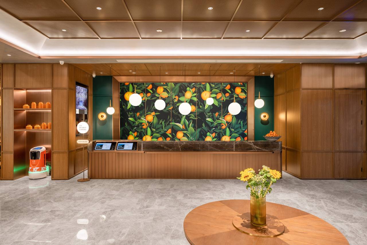 酒店是华住集团旗下中档品牌,以健康的生活方式和态度、活力阳光的酒店产品和服务,成为满足当代中产乐活生活方式和消费需求的标签性主流酒店品牌。空间设计上以加州阳光为主题,回归子本质,强调开放、自由、天然的性,使空间有田园清新之感,让人在阳光般的清新自由中感受自然之美。目录体验上提倡高效与活力,希望每一个走进桔子的人都能以健康活力的态度乐享生活态度。