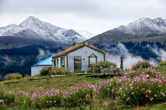 房间特别有民族特色,是哈萨克族的特色,院子里房主还自己种了一些小花,特别漂亮,房子窗外就能看到山里的美景空气也特别好,还有秋千可以拍照打卡,老板非常热情,告诉我们怎么去哪里玩,还招待我们一起喝茶,下次来还定这里