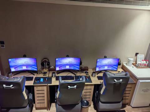 房间体验感很好电脑配置都很不错玩游戏下来体验感不错而且电脑都配有一次性耳机套还有湿巾用来消毒体验感十足。