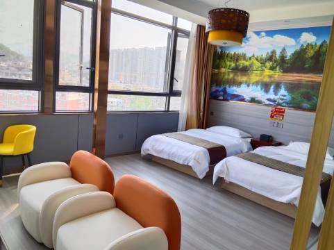 前台美女服务很热情,免费升级房型,江景房,离石泉古镇很近,下次来石泉还住这家