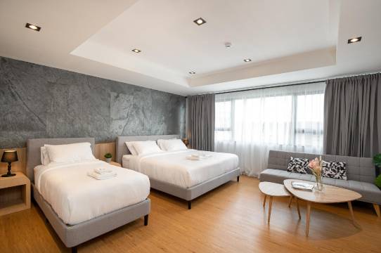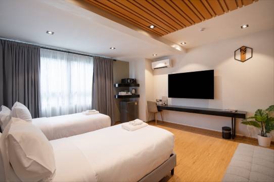 房间很干净,有智能电视,隔音效果好,空间也很大。酒店位置很棒,离7-11便利店只有5分钟路程,离商场10到12分钟。我们特别喜欢的是免费饮料,选择很多(泰式奶茶、澳白咖啡等等)。床很舒服,还提供了很多枕头。