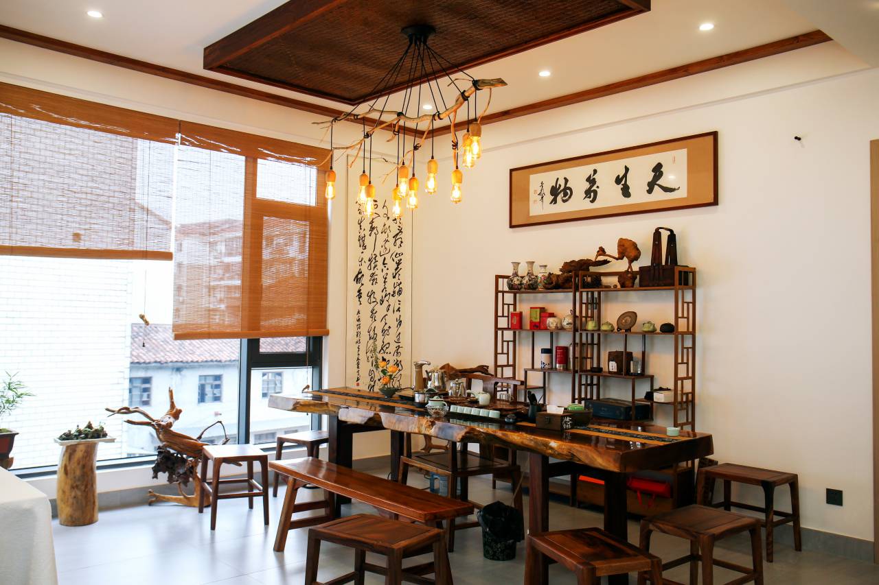 🍵出了房门,门厅设计也非常用心,有质量不错的汉服可以更换,有古琴,还可以泡茶聊天,拍照打卡很有氛围哦。
